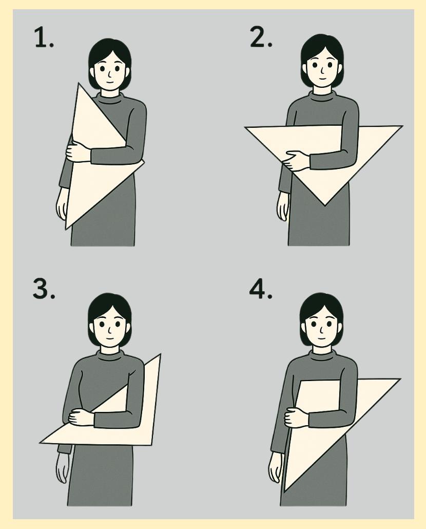 左肘を固定するために三角巾を置く位置を図に示す。