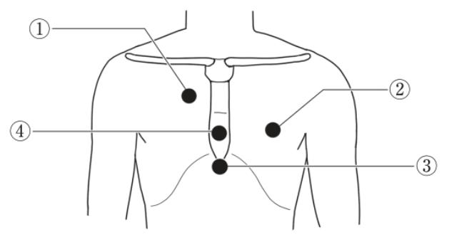 成人の心肺蘇生法における圧迫部位を図に示す。